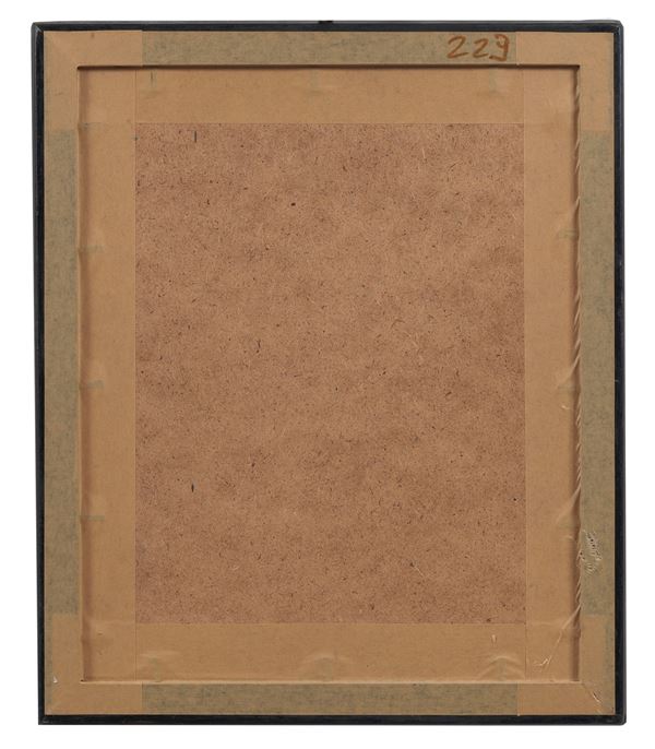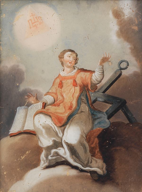 "San Lorenzo", small painting under glass of fine pictorial quality in an ebonized and gilded frame