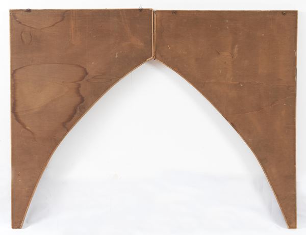 "Allegory of little angels with floral garlands", overdoor with two crescents painted in oil on wood