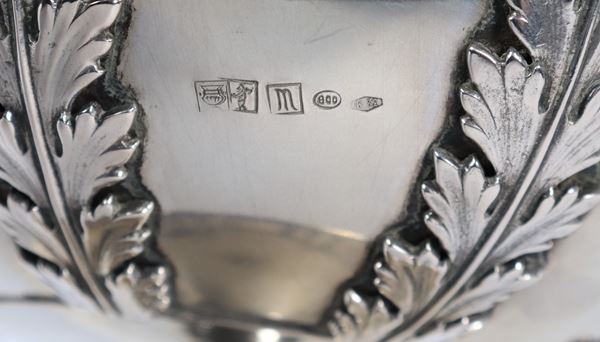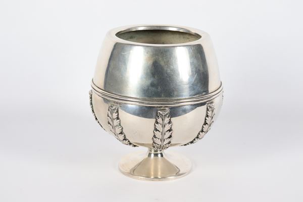 Silver cup with embossed leaves, damaged interior, gr. 900