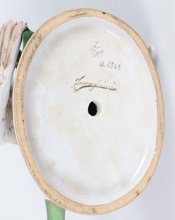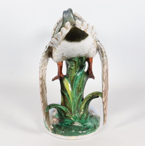 Signed. "Duck", glazed ceramic sculpture entirely decorated with various polychromes. 1940s-1950s