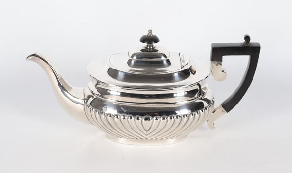 Antica teiera inglese vittoriana in sheffield, con pomo e manico in legno ebanizzato