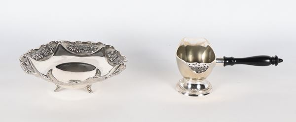 Antico lotto in sheffield di una salsiera ovale e un'alzatina cesellata e sbalzata (2 pz.)