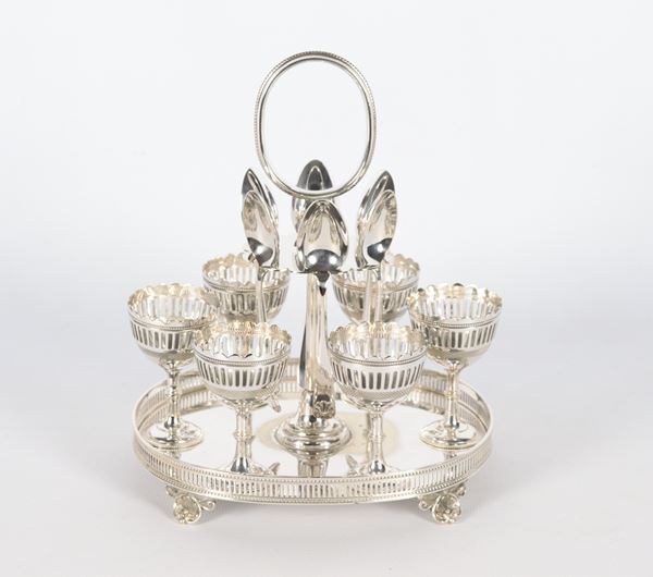 Antico portauova in sheffield cesellato e sbalzato