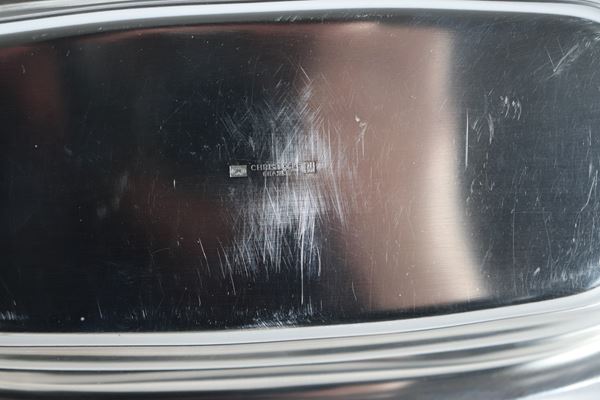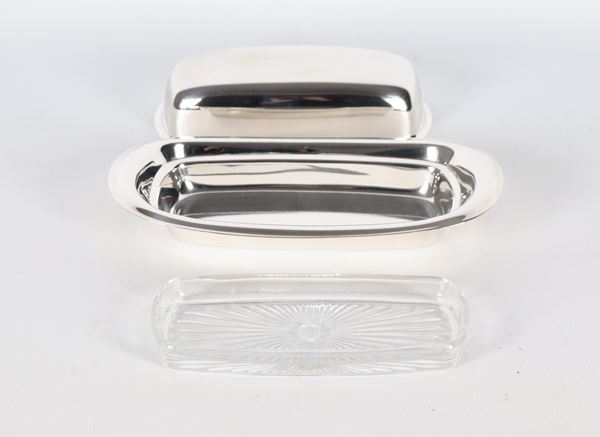 Burriera in metallo argentato Christofle, all'interno vaschetta in vetro