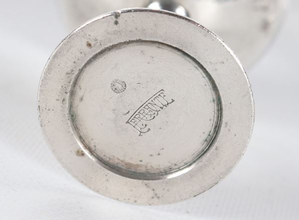 Lotto di nove coppette da gelato in metallo argentato. Marcate Ferrante