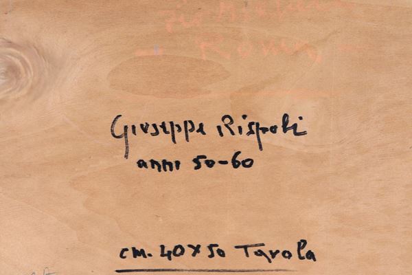 Reca la firma di. "Scugnizzo al muretto", luminoso dipinto ad olio su compensato in cornice in legno dorato e passepartout