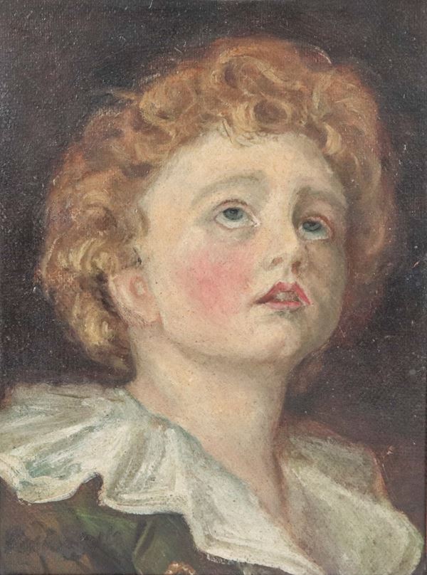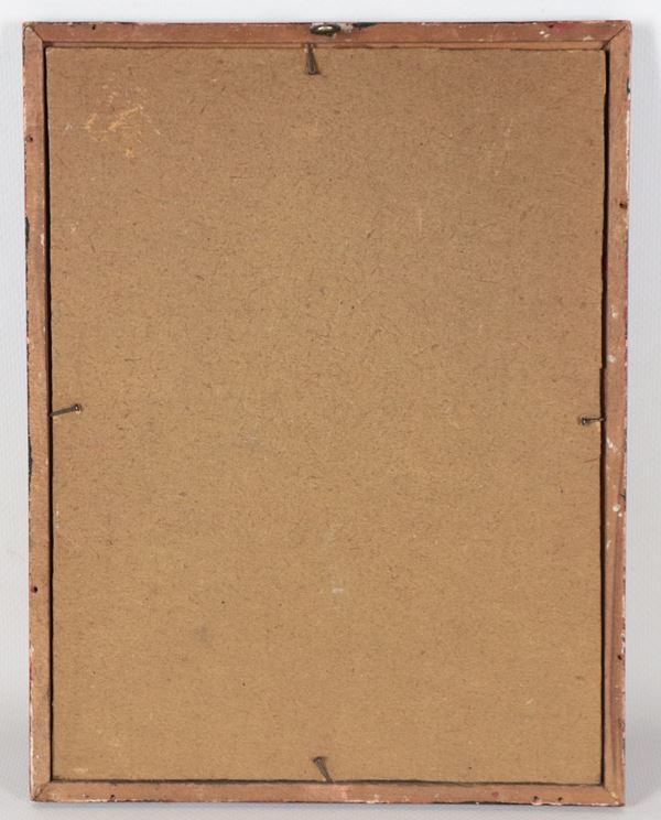 "Ritratto di giovane fanciulla", piccolo dipinto ad olio su cartone pressato in cornicetta laccata