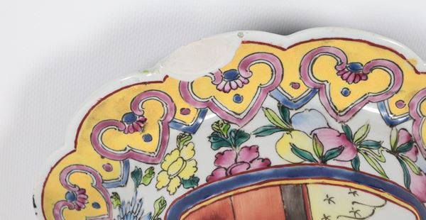 Chinese Canton vase in enamelled and polychrome porcelain with scenes of court life
