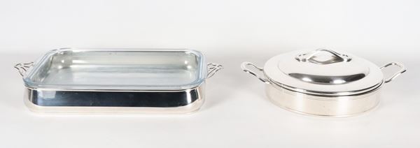 a round one with lid 37 x 29 x 14 cm and a rectangular one 47 x 25 x 7 cm h.