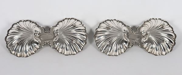 Pair of 925 Sterling Silver Shell-Shaped Bonbon Holders, 400g