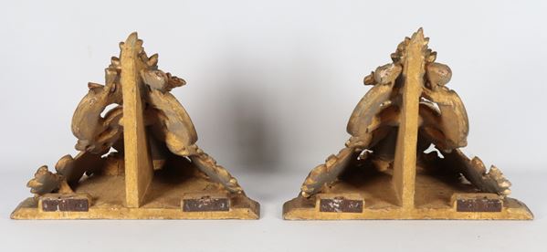 Pair of antique wall brackets in gilded wood and carved with Louis XIV motifs
