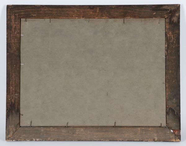 decorated frame and grey passepartout, the frame has a defect in one corner