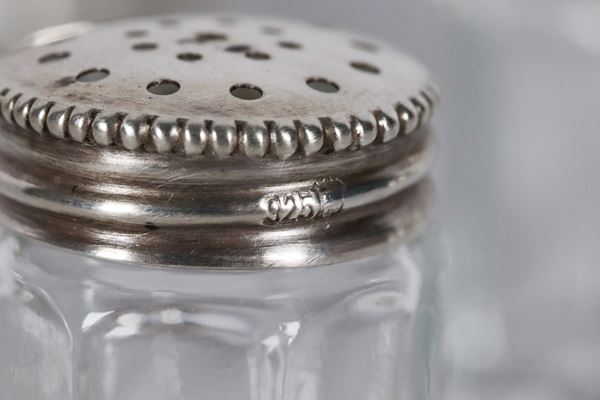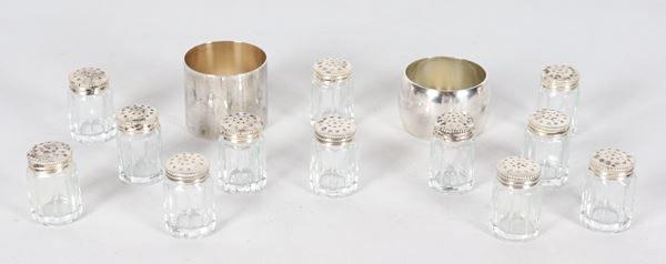 Silver and crystal lot of twelve salt shakers and two napkin rings (14 pcs.)