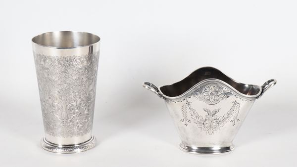 Silver metal lot of a basket and a small vase (2 pcs.)