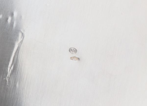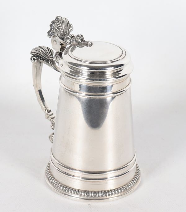 chiseled and embossed with floral scrolls, beading and shells on the handle