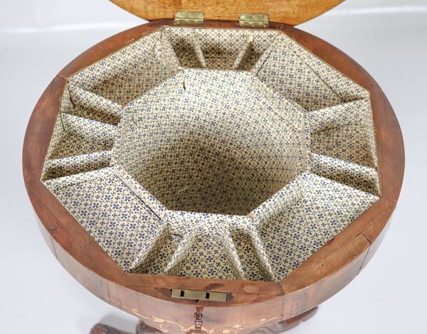 Antique octagonal shaped walnut work table