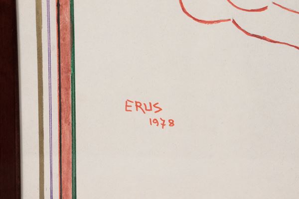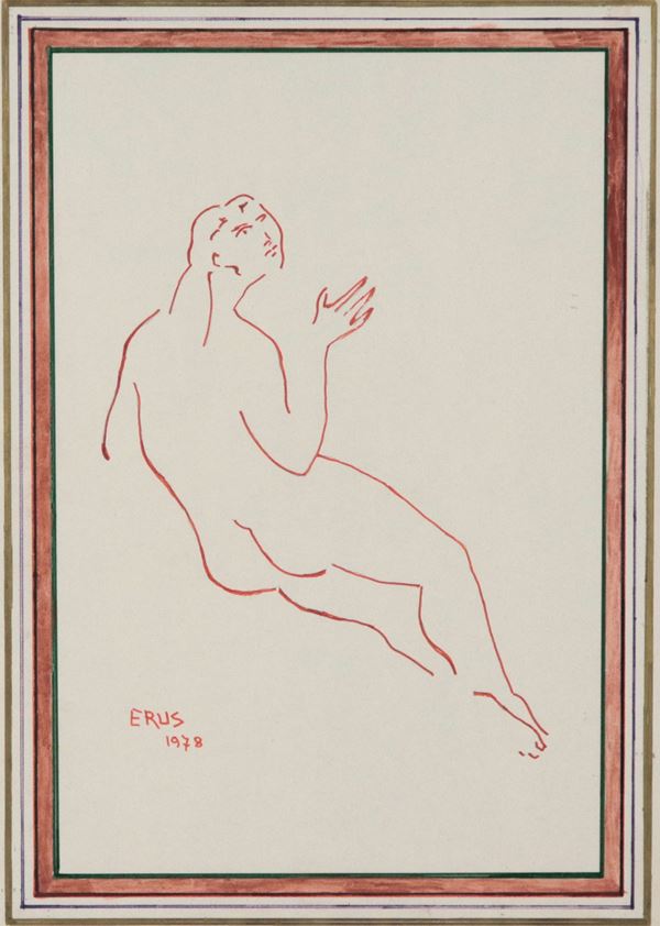red ink drawing on paperwalnut frame and passepartout, 40 x 27 cm.