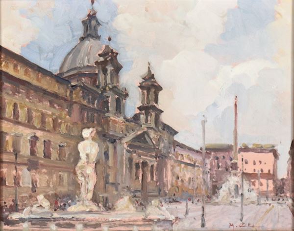 Signed. "View of Piazza Navona"