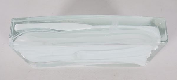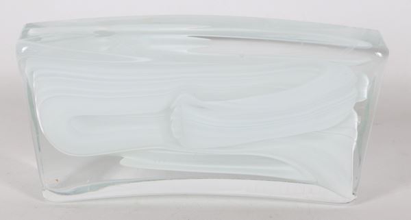 Contemporary crystal sculpture, inside a series of lattice-colored waves