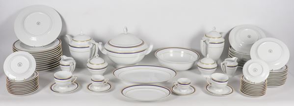 German Bavaria porcelain dinner service with blue and gold filleted edges (70 pcs)