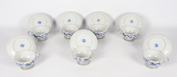 Lot of seven teacups and saucers in Japanese porcelain with polychrome decorations and oriental motifs