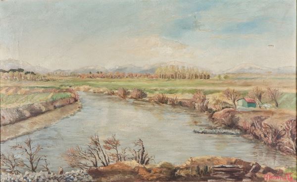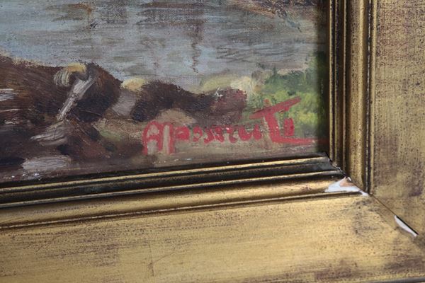 oil painting on canvasgilded wooden frame. The canvas has a cut at the top right, 54 x 81 cm