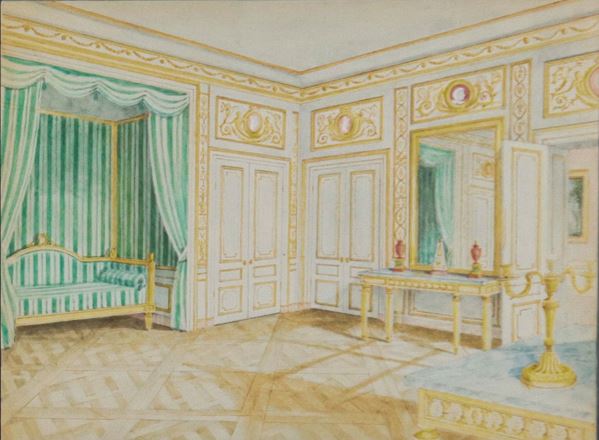 pair of watercolors on papergilded wooden frames and passepartout, 24 x 33 cm each.