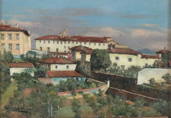 small oil painting on cardboardsilver frame and passepartout, 15 x 21.5 cm.