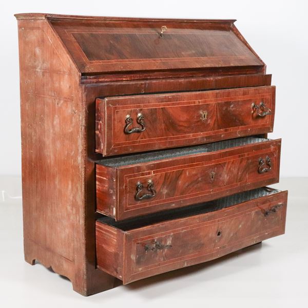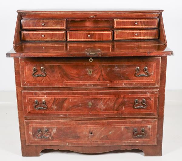 drawer forming a desk and three drawers underneath, 116 x 52 x 114 cm h.