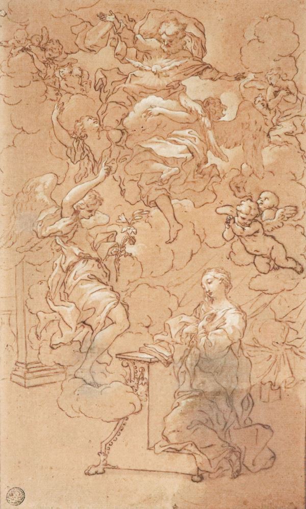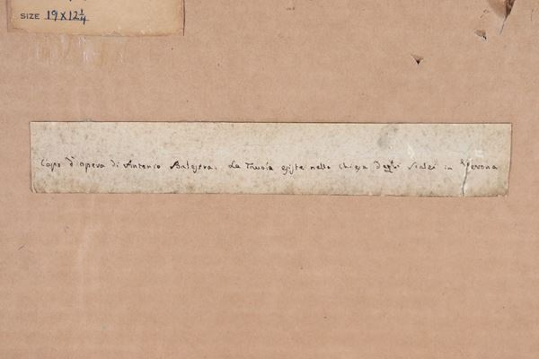 Preparatory sketch for the altarpiece in the Church of Santa Teresa degli Scalzi in Verona. Antique gilded and carved wooden frame, 48 x 33 cm.