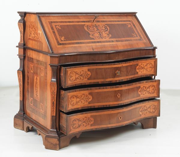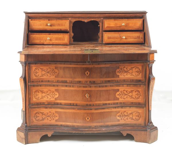 Louis XIV Roman walnut bureau inlaid with geometric motifs of "Angelino yellow"