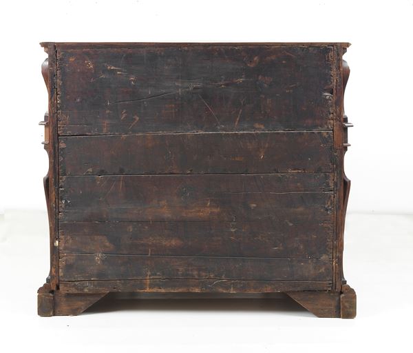 Drawer forming a writing desk and three drawers underneath. Arched ribs with added scrolls and box feet, 130 x 69 x 113 cm h.