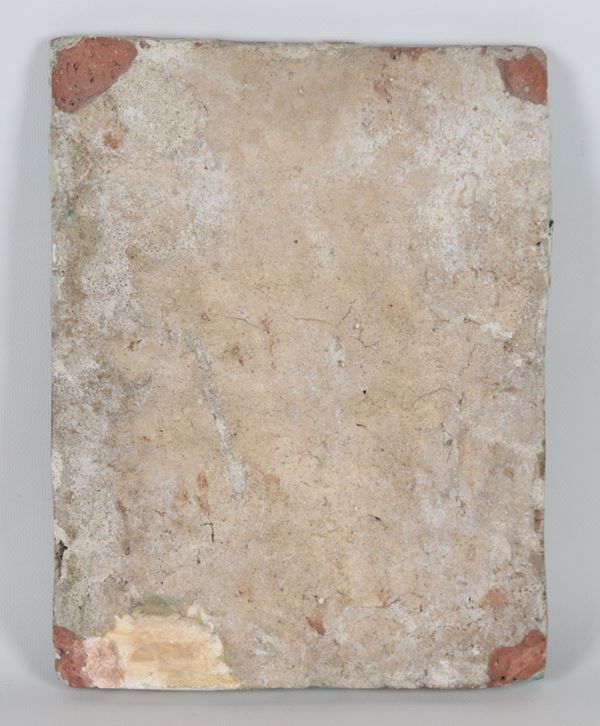 Ancient votive plaque in Castelli majolica with "Sacred Heart" in the center, defects