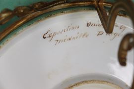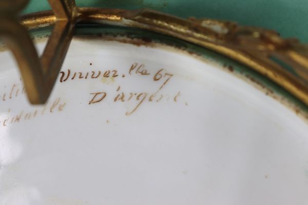 On the back of the bottom of the plate is an inscription stating that the work won the silver medal at the Universal Exhibition in Paris in 1867. Diameter 32 x 17 cm h.