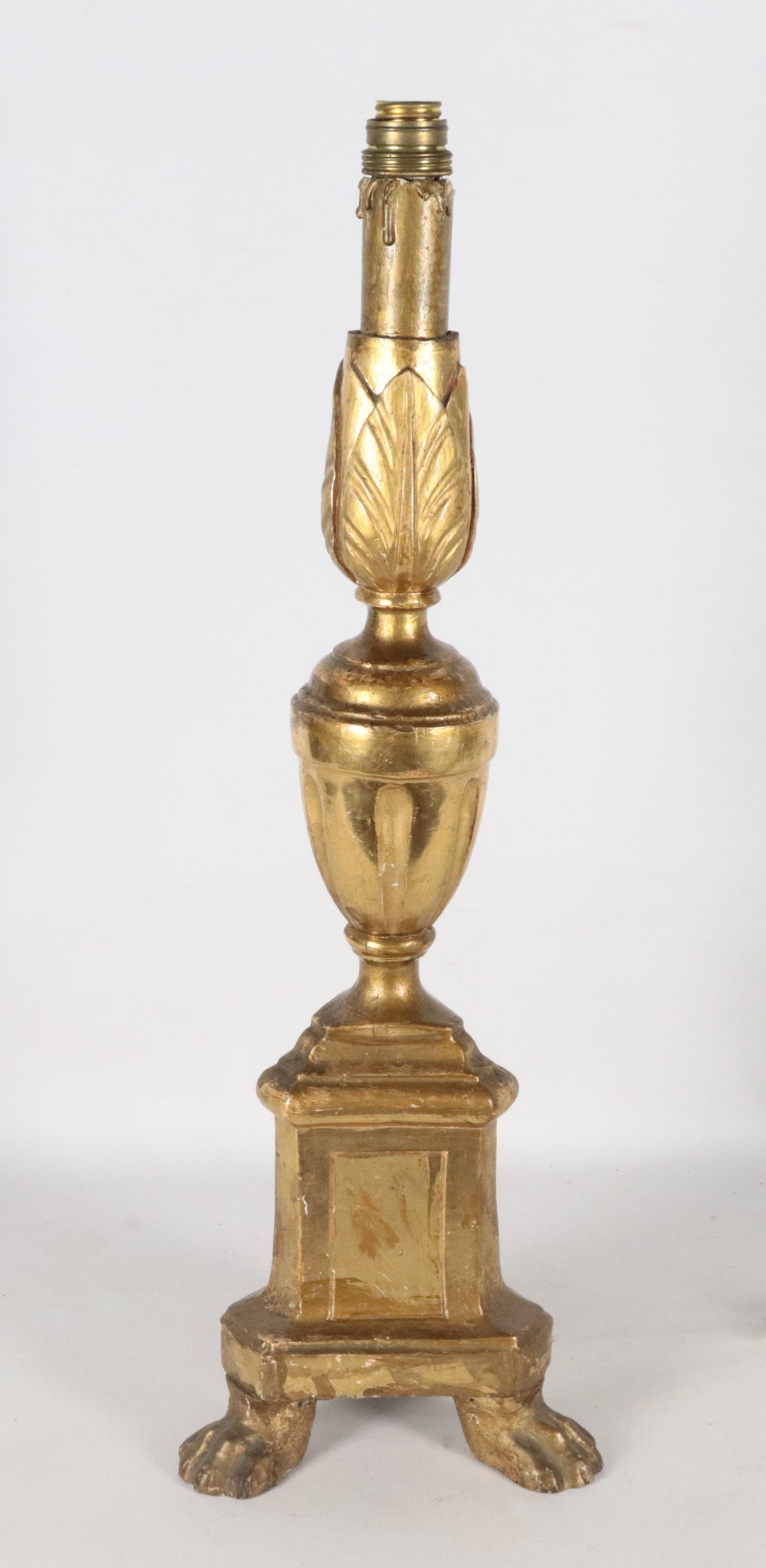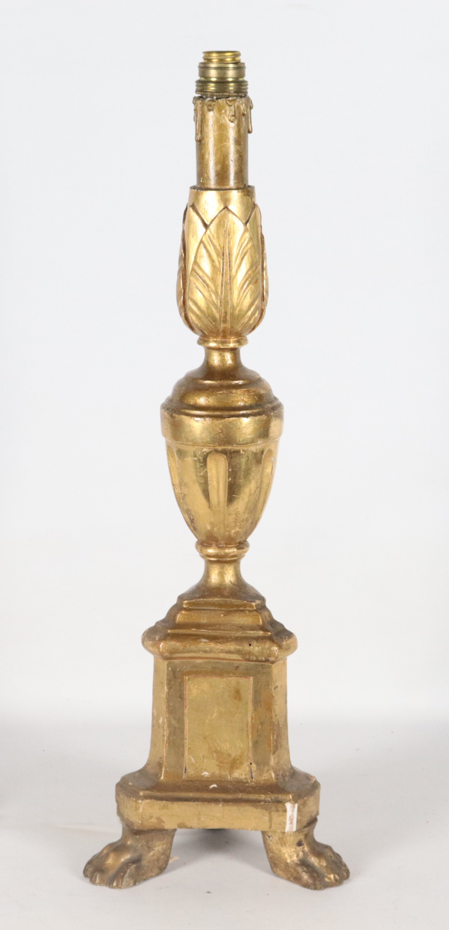 Antique gilded and carved wooden torch holder