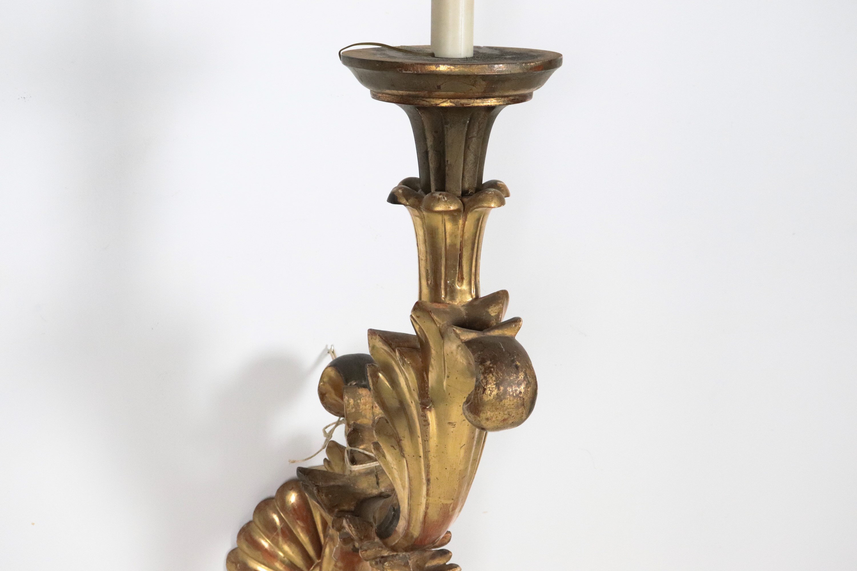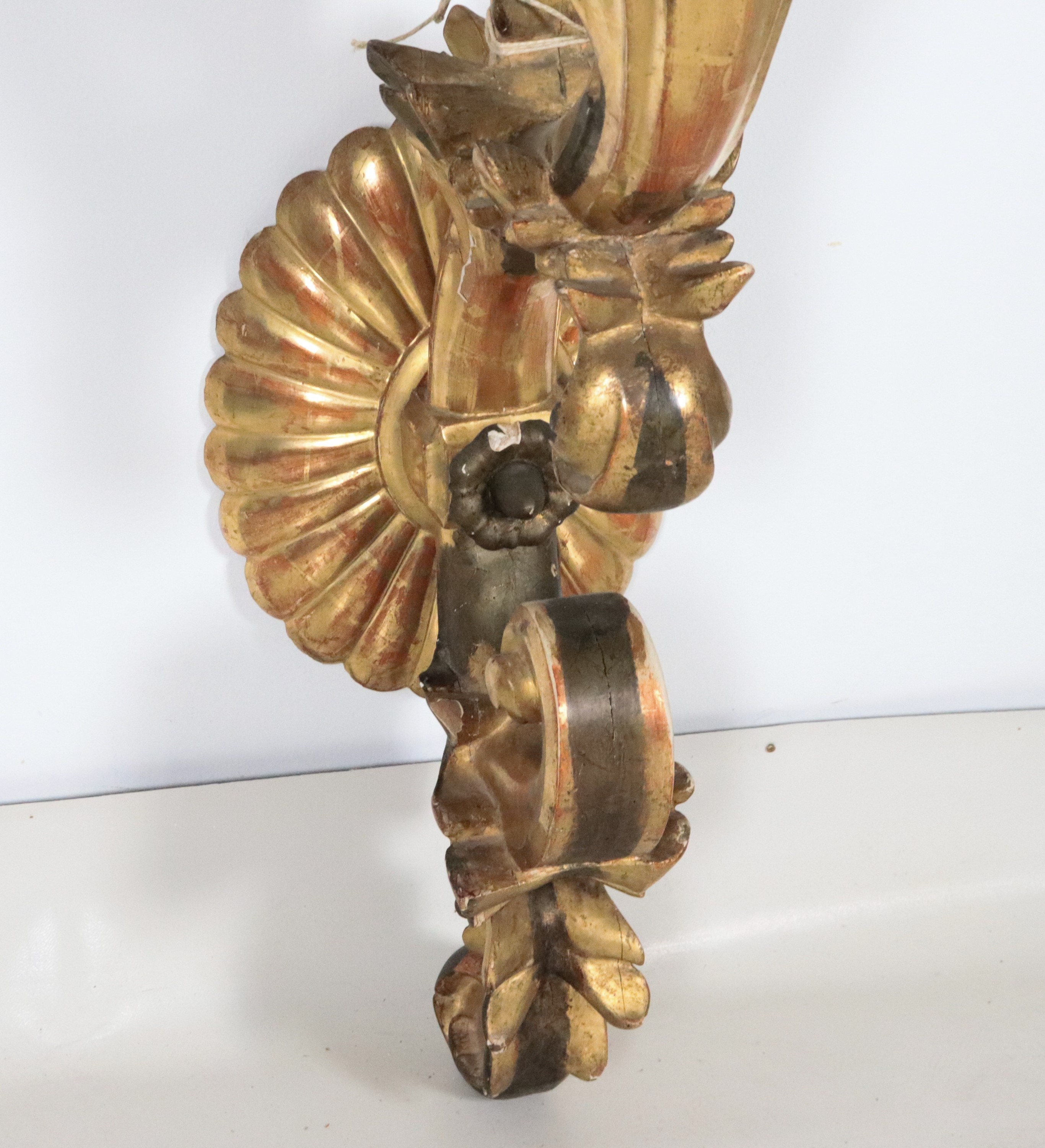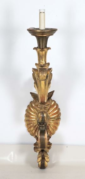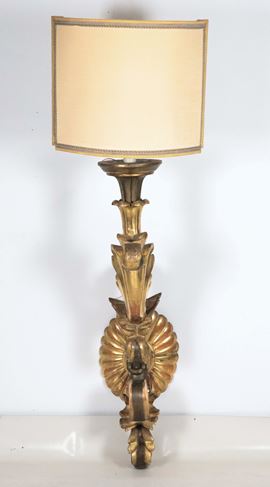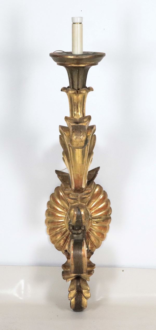 Antique large palace arm in gilded wood and carved with frieze and curl motifs