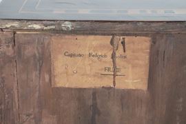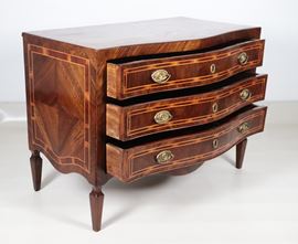 three drawers and four truncated pyramid legs, 115 x 64 x 85 cm h.