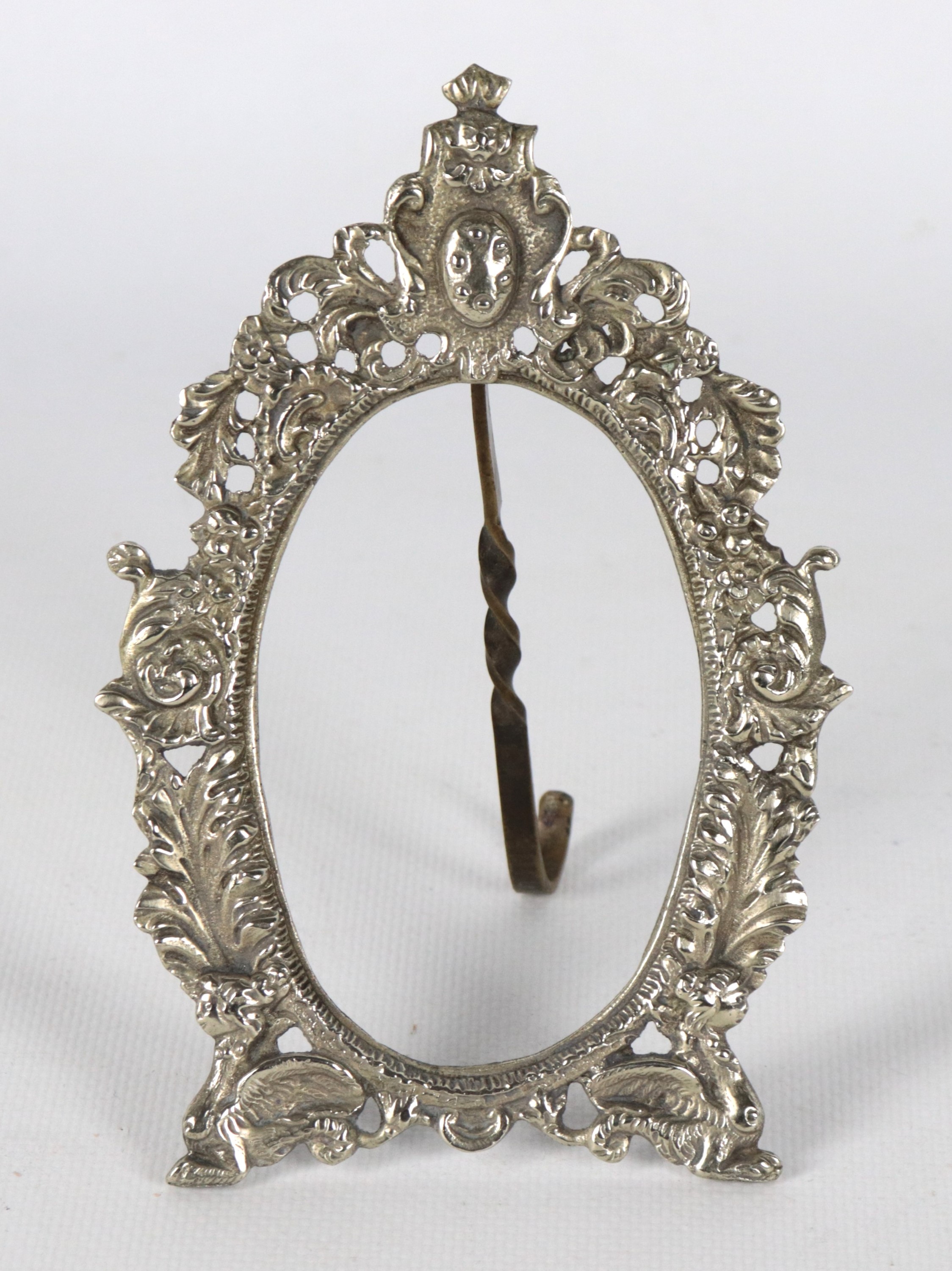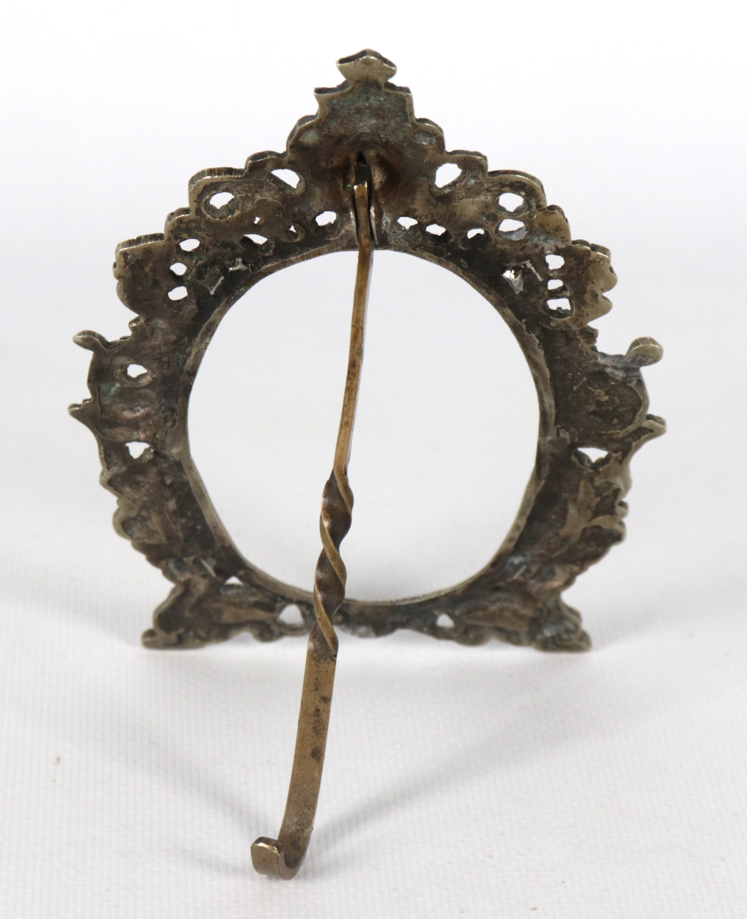 Antique oval miniature frame in silver-plated bronze, embossed and chiseled