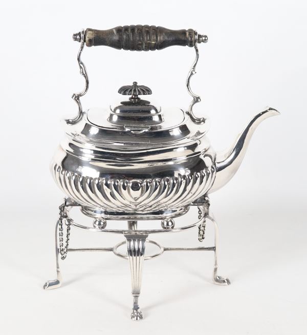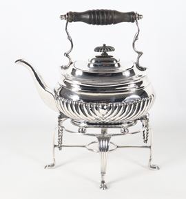 Antique Sheffield samovar, embossed and chiseled, missing the spirit bottle