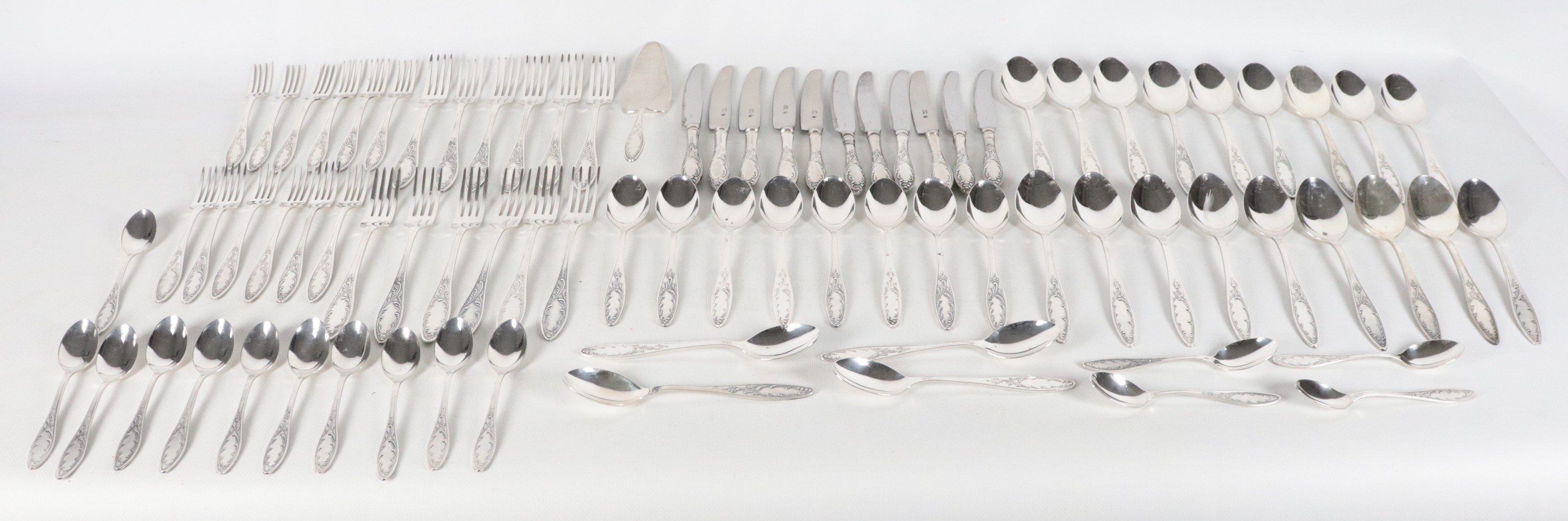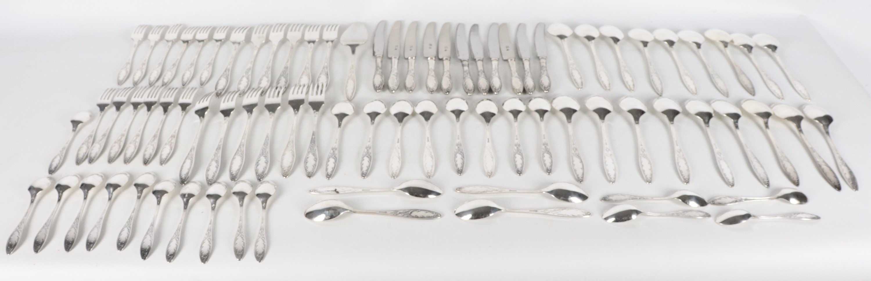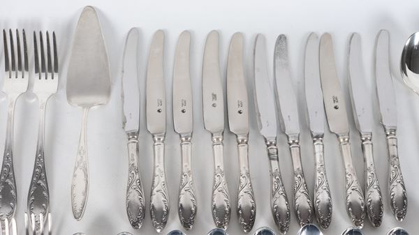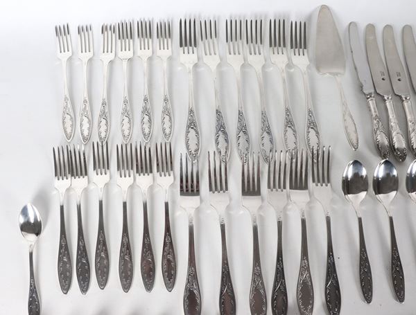 Antique silver-plated cutlery set, embossed and chiseled (81 pieces)