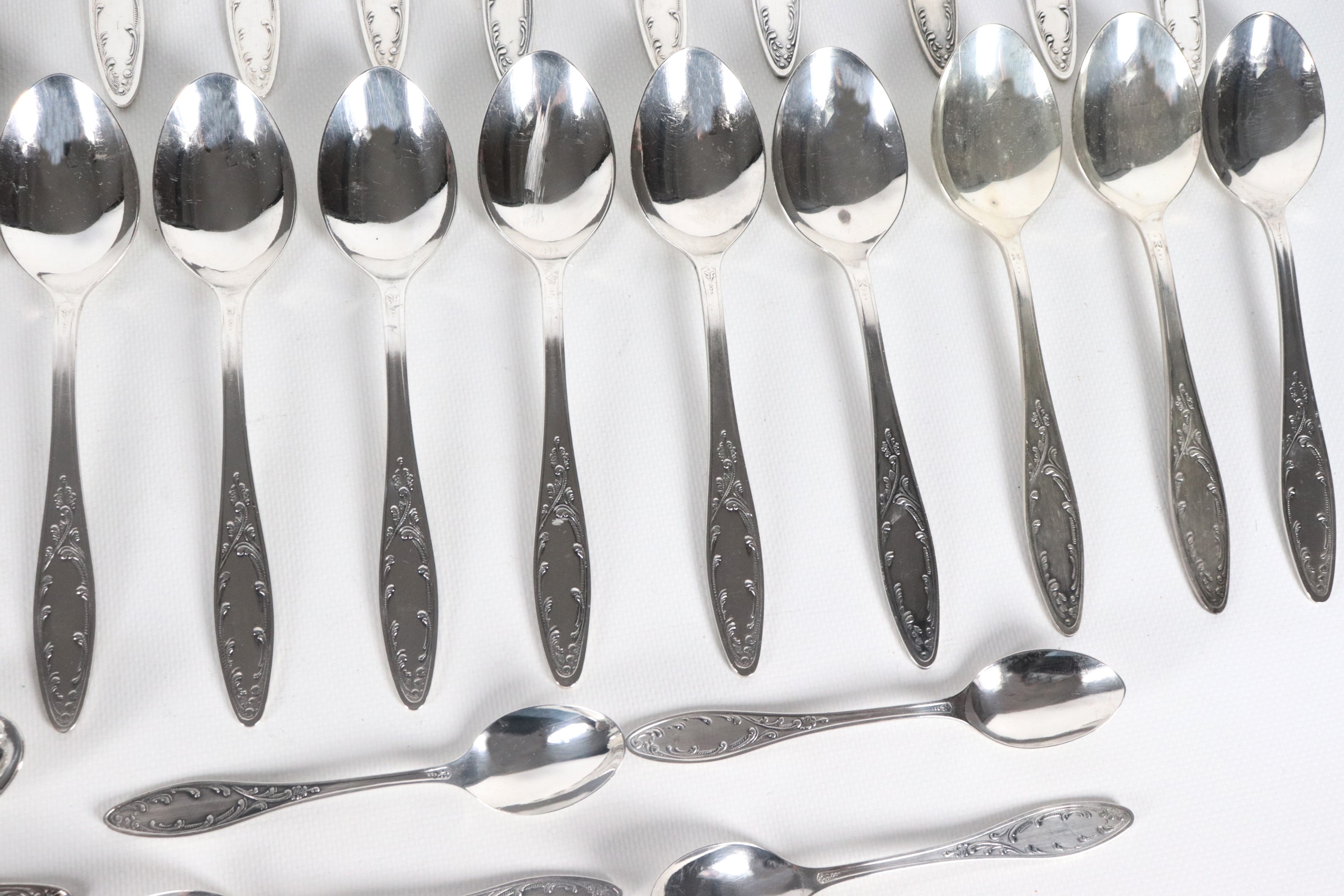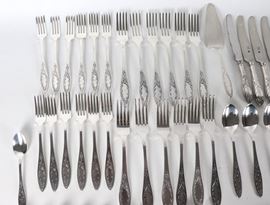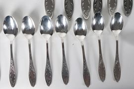 18 large spoons, 12 large forks, 11 large knives, 12 small spoons, 12 small forks, 15 teaspoons and 1 cake server.