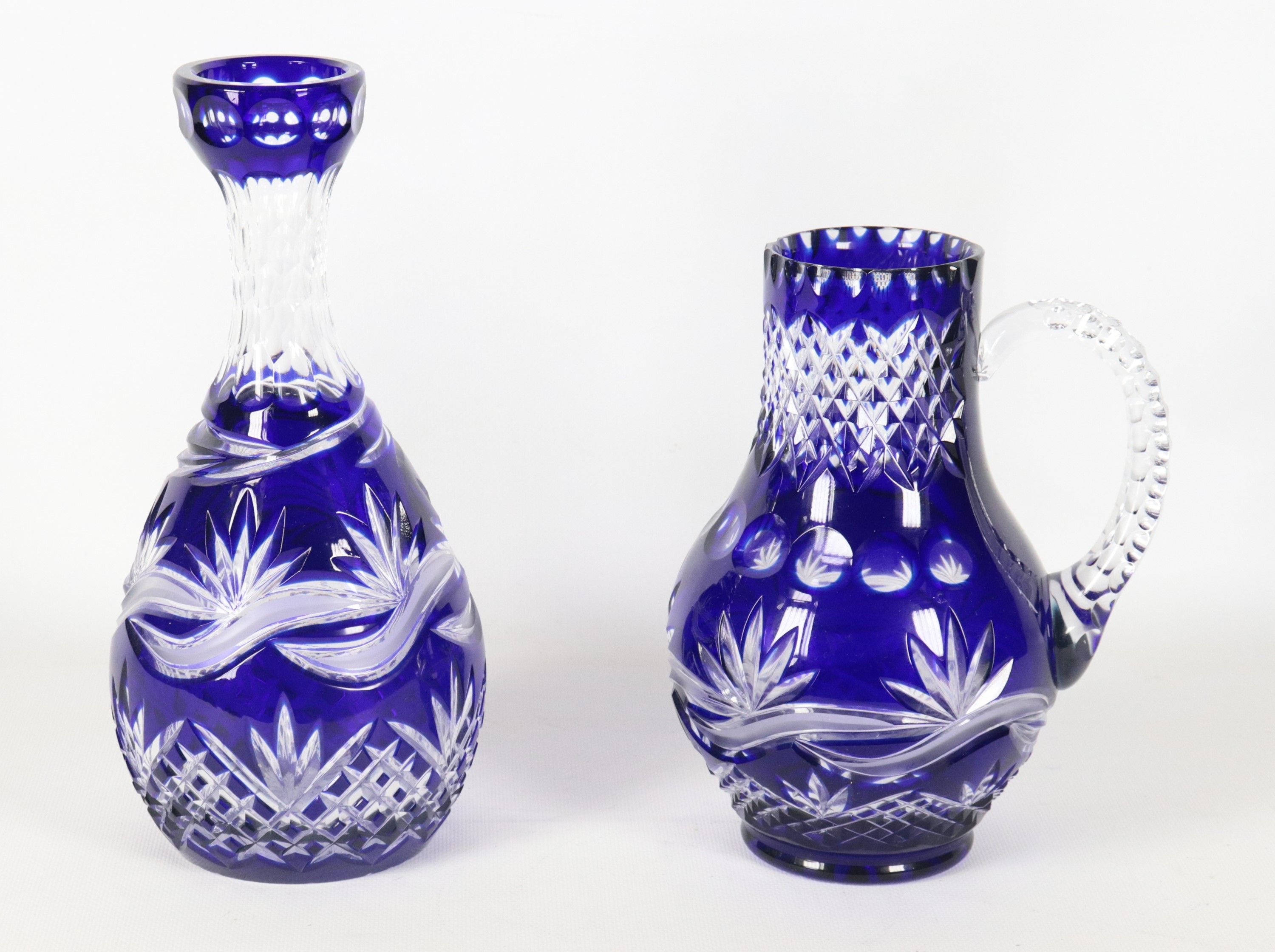 Bohemian Cobalt Blue Etched Crystal Lot (2 pcs)