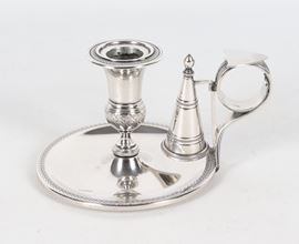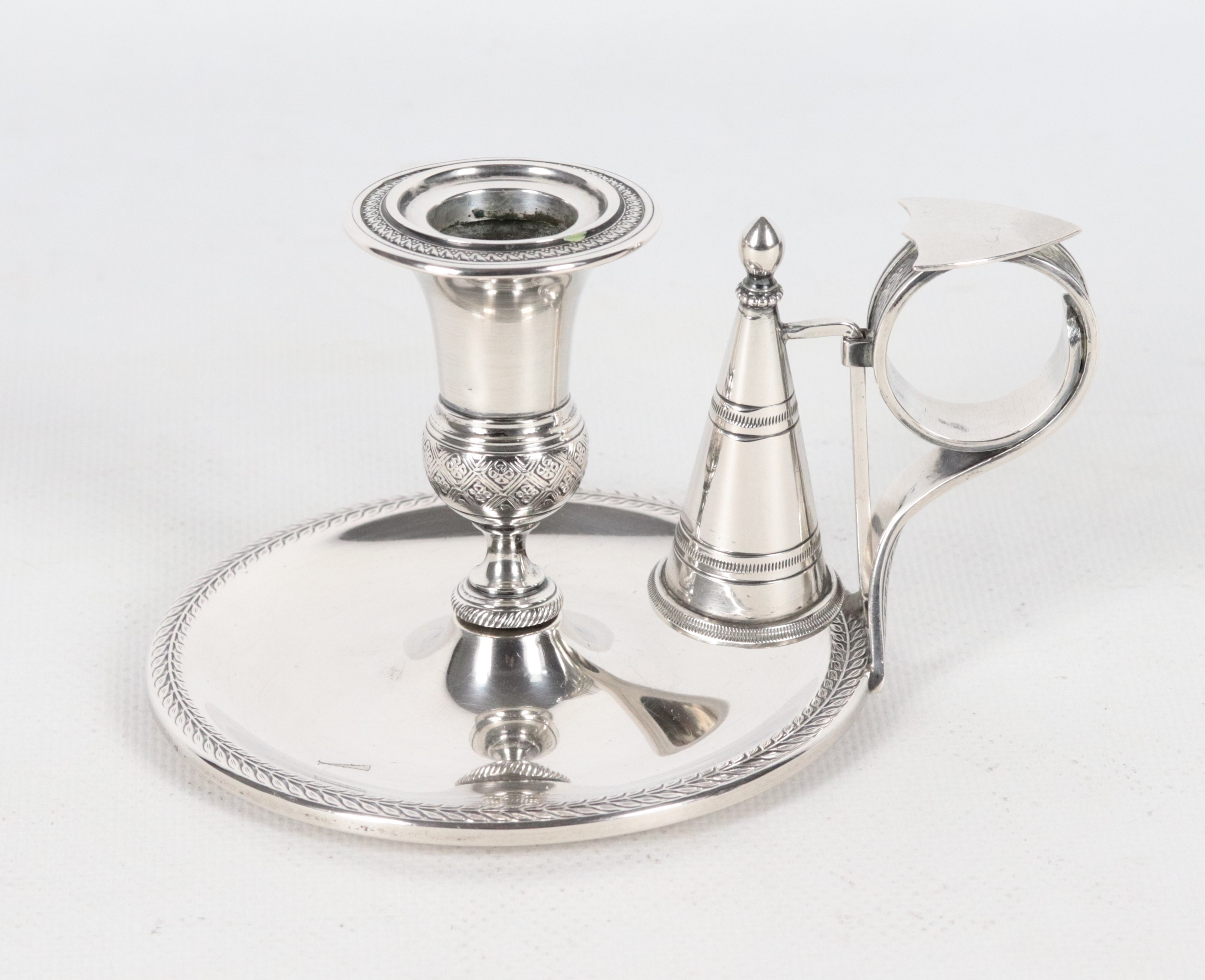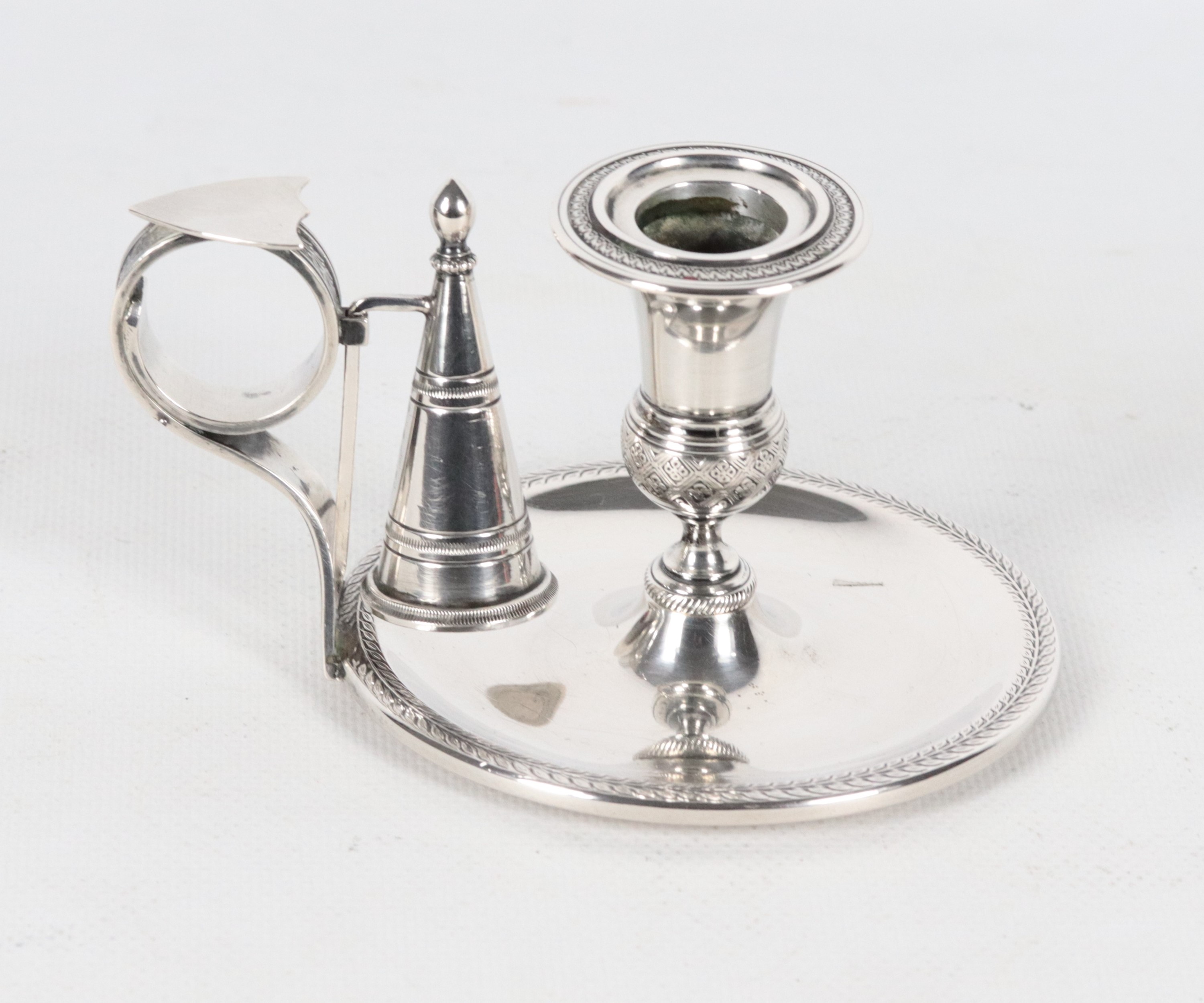 Chiseled and embossed silver candlestick with Empire motifs, 200g