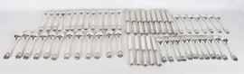 12 large spoons, 13 large forks, 9 large knives, 9 small spoons, 10 small forks and 5 small knives