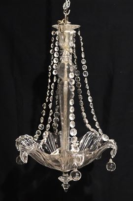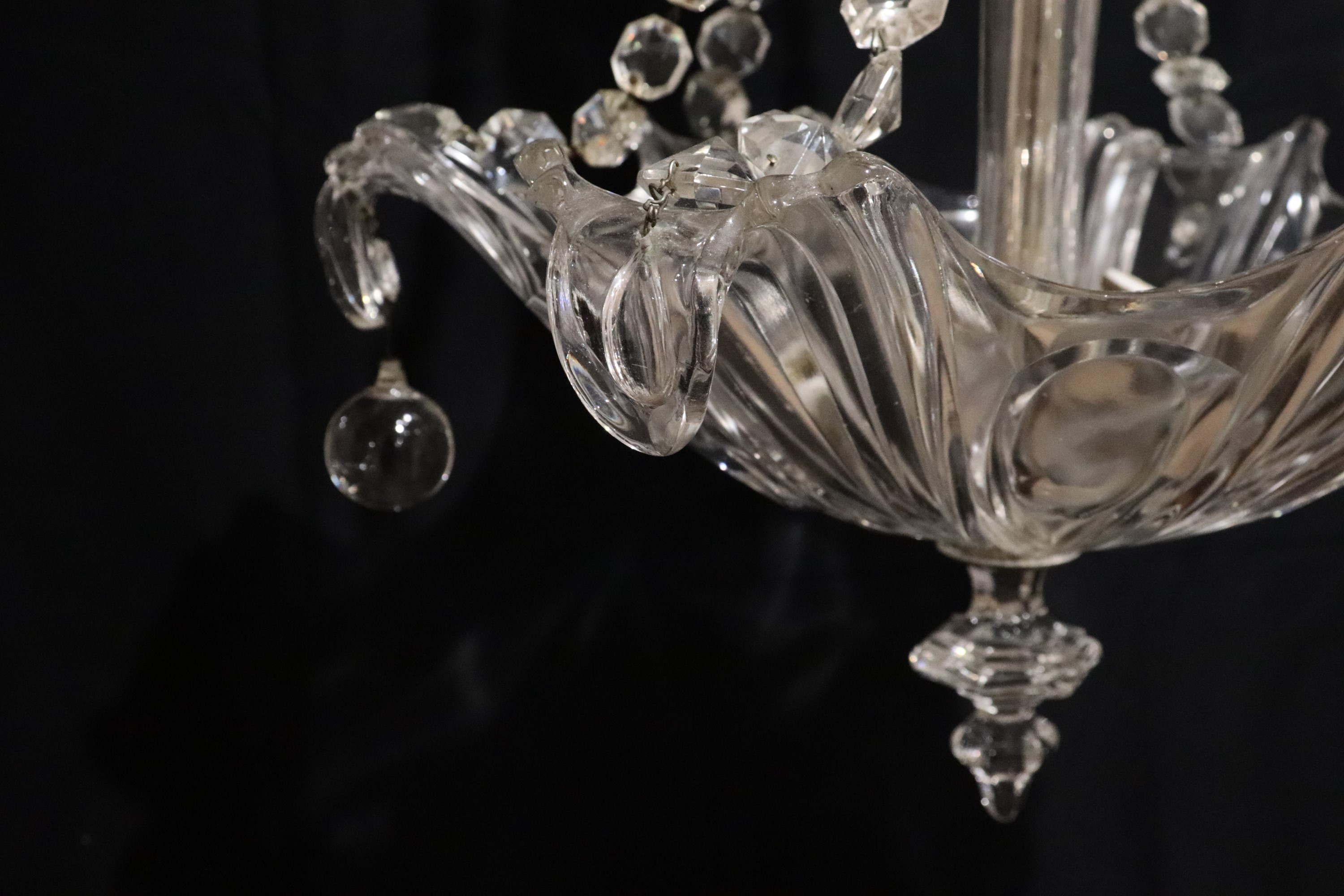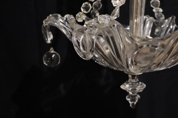 Clear Murano glass chandelier, flower-shaped with beaded pendants, 3 lights