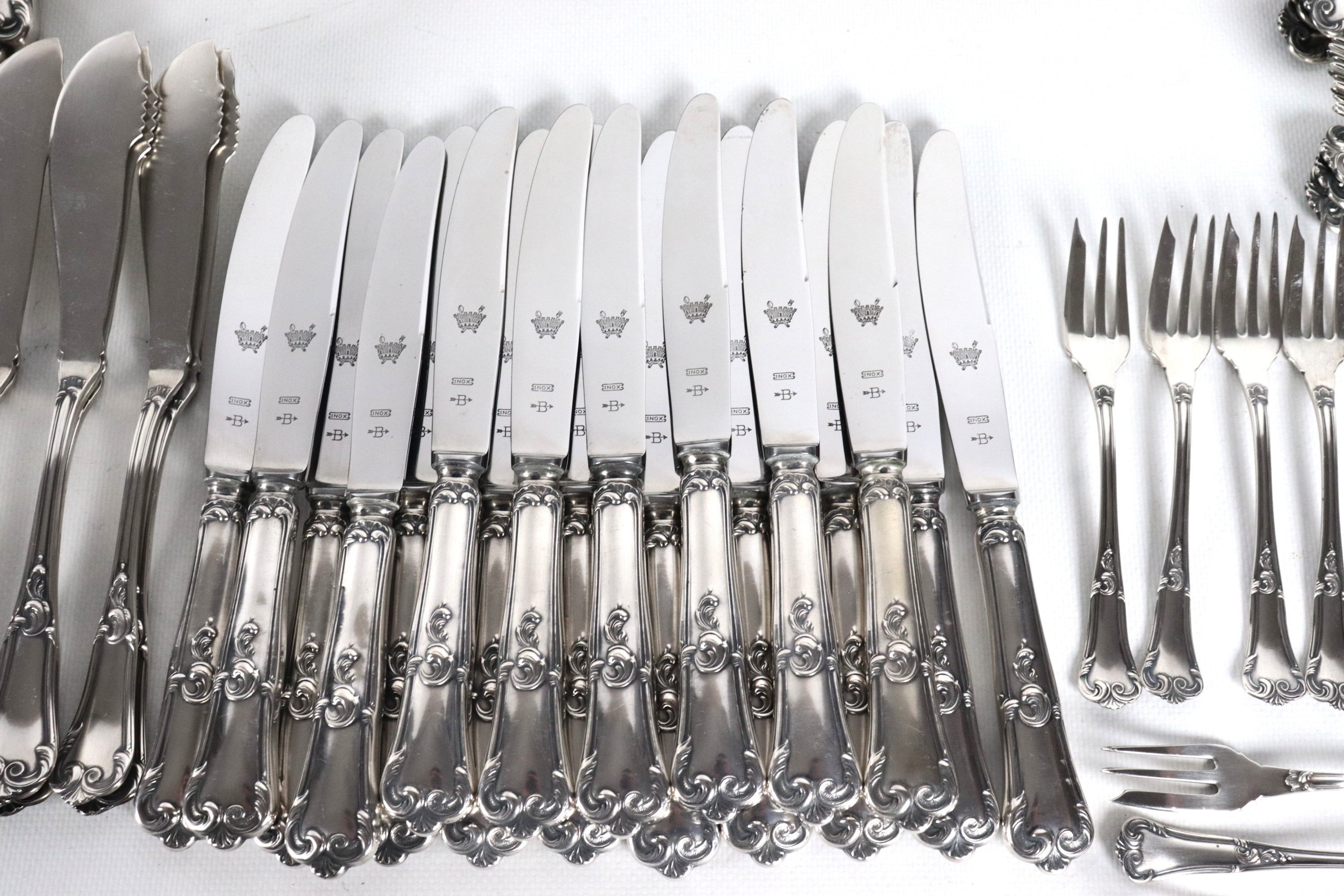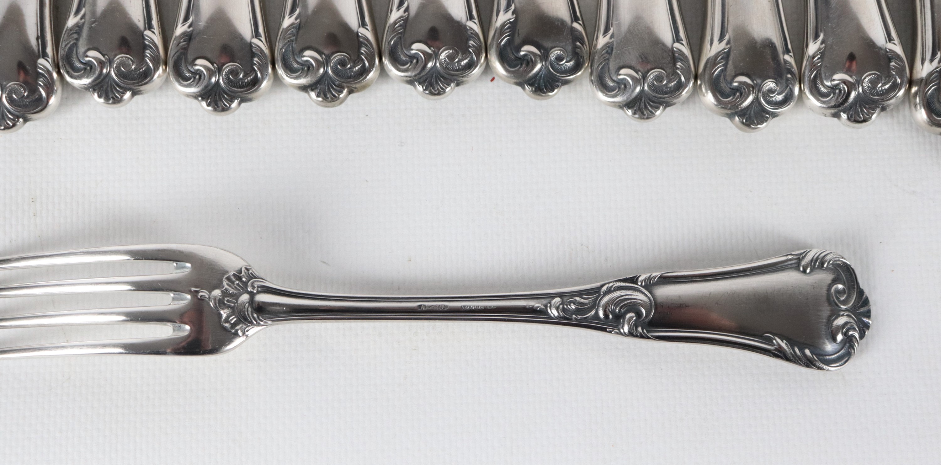 Cutlery set in chiseled and embossed silver with Louis XV motifs (203 pieces), gr. 8970