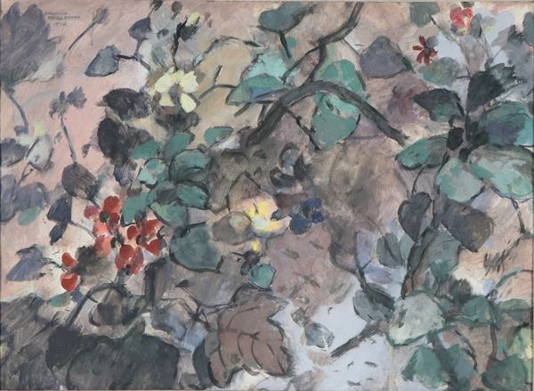 Signed and dated 1954. "Allegory of Plants and Flowers"