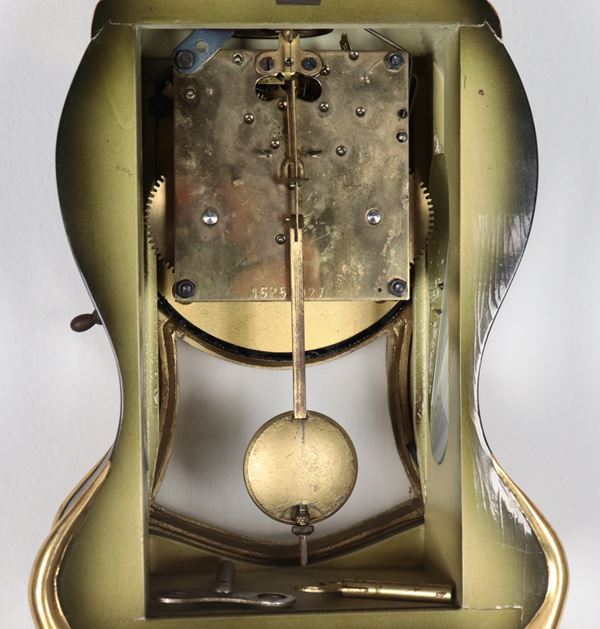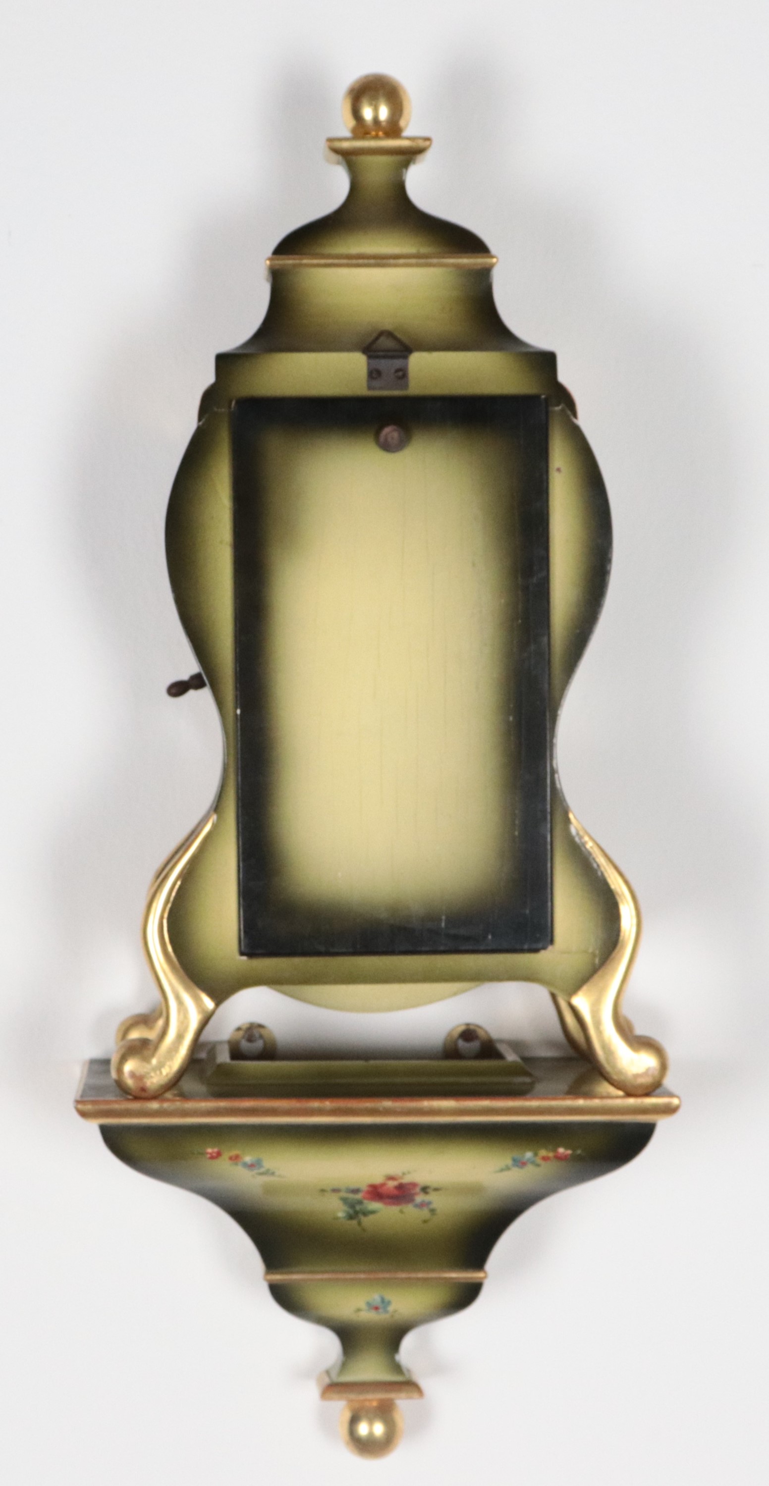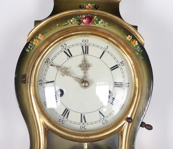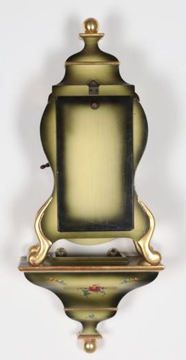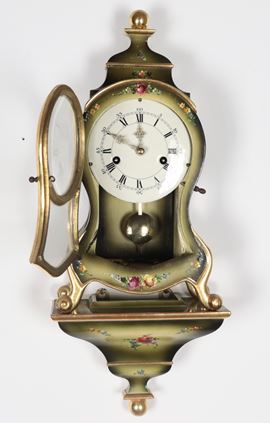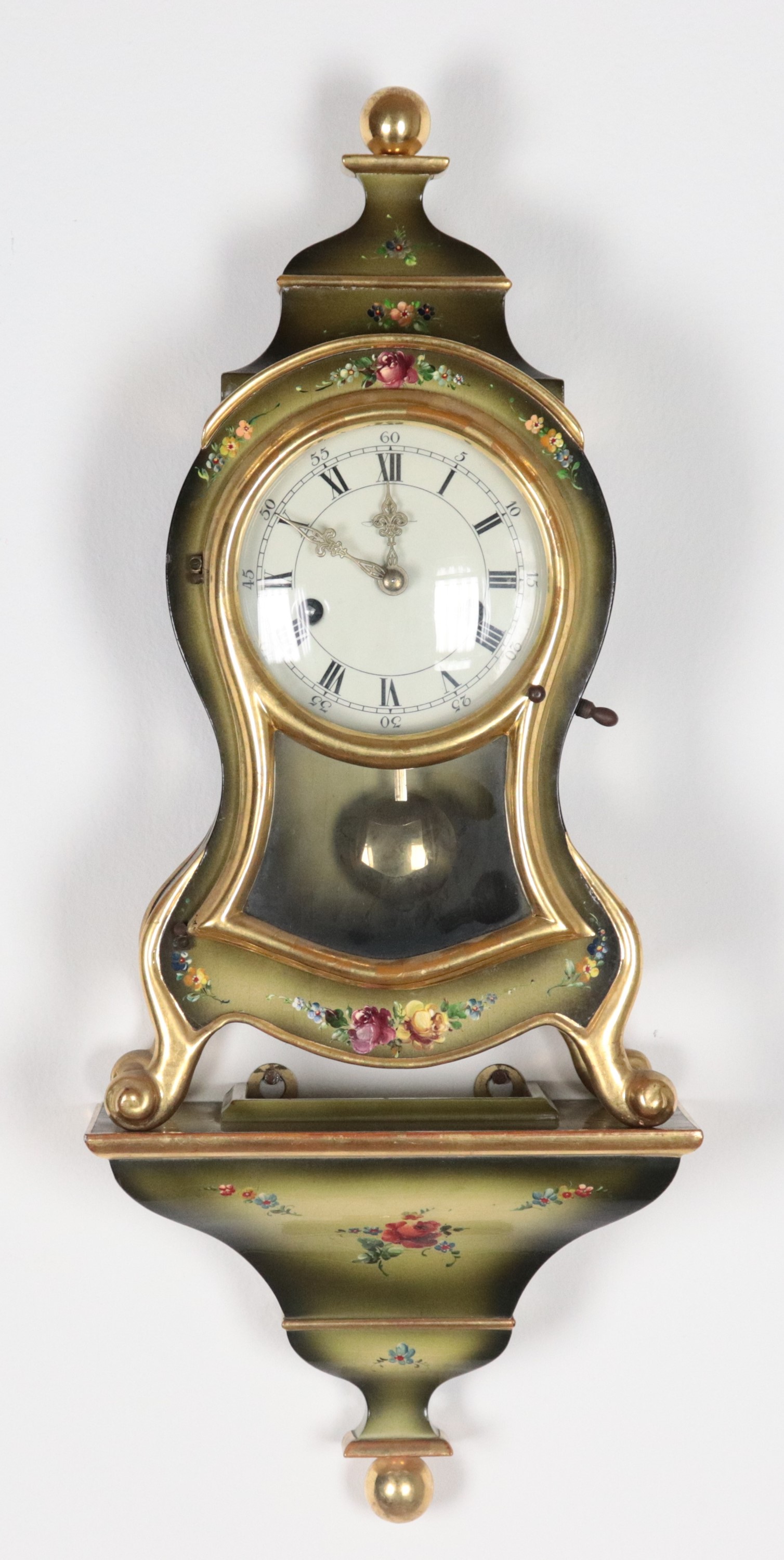 French Louis XV style cartel clock, lacquered and decorated with bouquets of flowers, white enamel dial