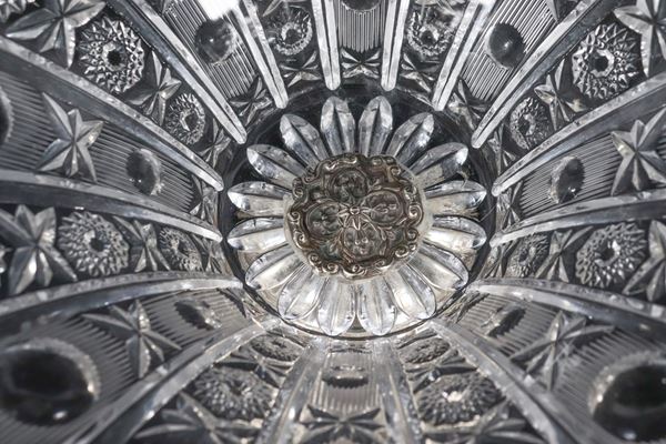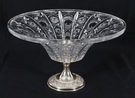 Fruit bowl in worked and engraved crystal, with a chiseled silver base