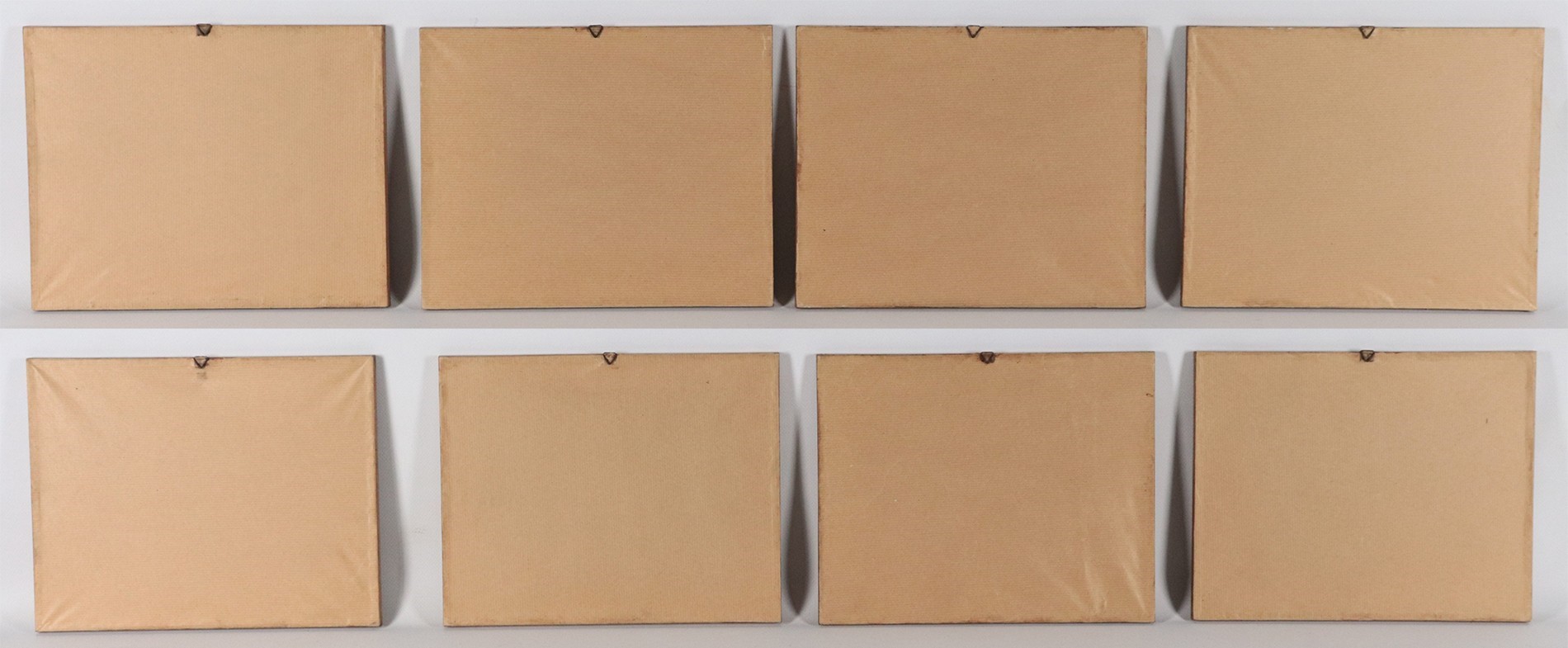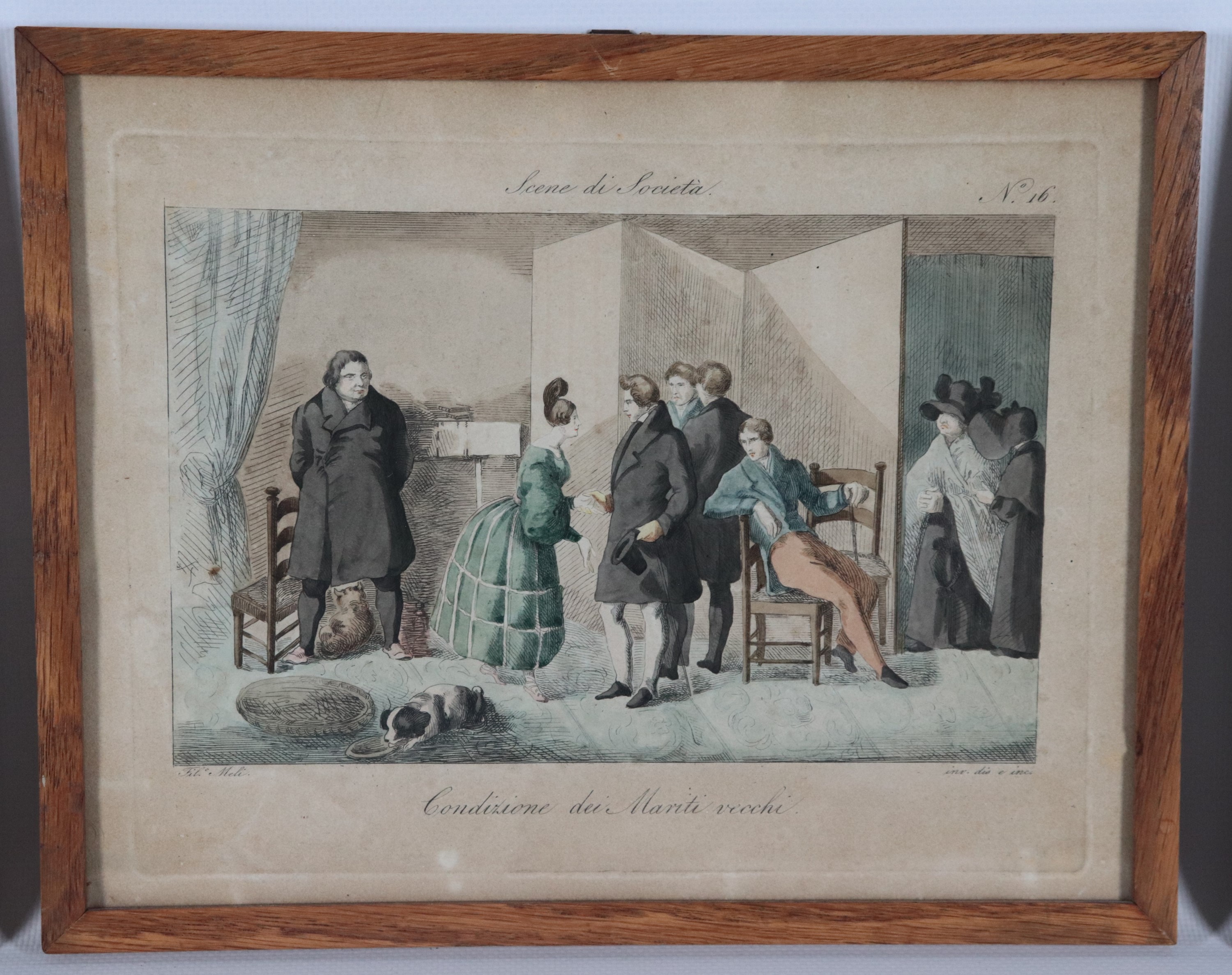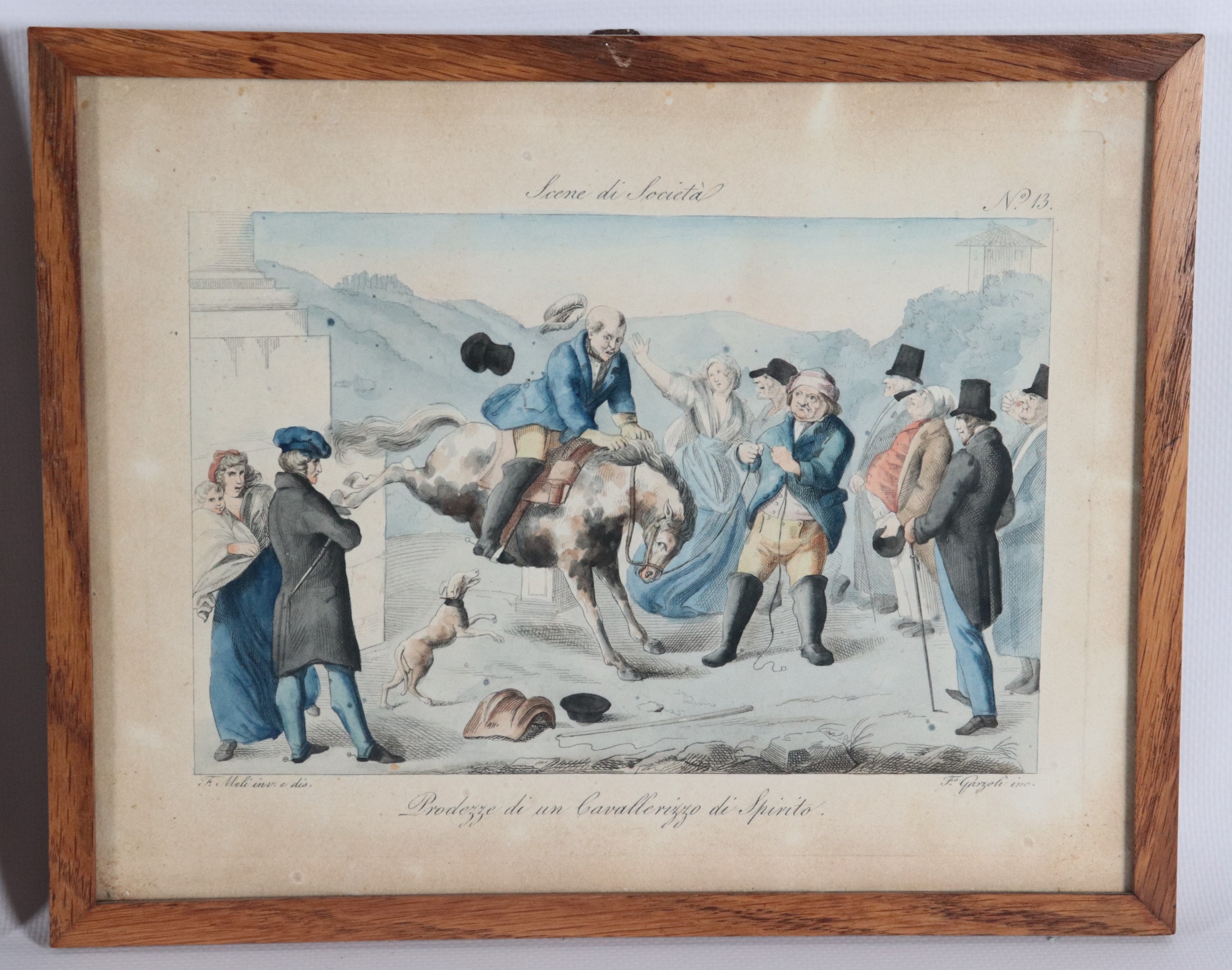 Lot of eight small antique watercolor engravings "Grotesque Scenes"